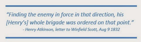 “The regular Troops, and Dodge at the head of his Battallion soon came up and joined in the action followed by part of Posey’s Troops, when the enemy was driven still further through the bottom to several small willow Islands successively where much execution was done.” – General Henry Atkinson