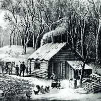 Next day came an order that all should go to the nearest settlement, called Gum Settlement, near where Galesburg now is. Here were several families crowded together in little log houses. Here we stayed three weeks, the men either scouting for Indians or working on the fort. The larger children were kept on top of the houses to watch for Indians. Once they came near but were scared away by some tin milk churns which the women had put out on a hay rack to sun. They thought they were big guns and would not face them. More men came from Sangamon and Schuyler counties and bands were formed to work alternately on the fort and range for Indians. Often the Indian alarms would come in and we, the women and children, would run to the thick woods where we would remain in hiding until midnight, when the men would return and call our mothers by name and they would answer. Thus, you can imagine some of the trials of those early days.